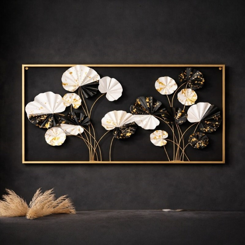 Elegant Black & White Floral Metal Wall Art Frame | Modern Metal Wall Decor India