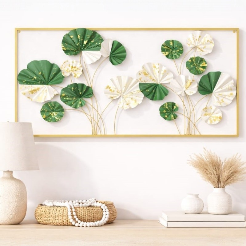 Luxury Green & White Floral Metal Wall Art Frame