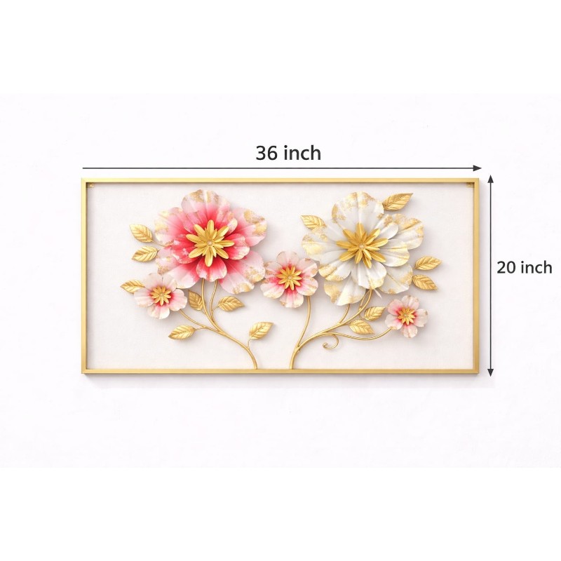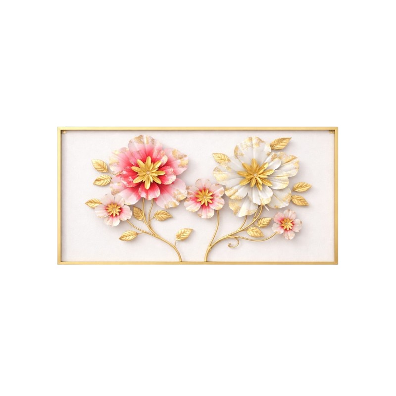 Luxury Floral Metal Wall Art Frame with Pink & White Flowers