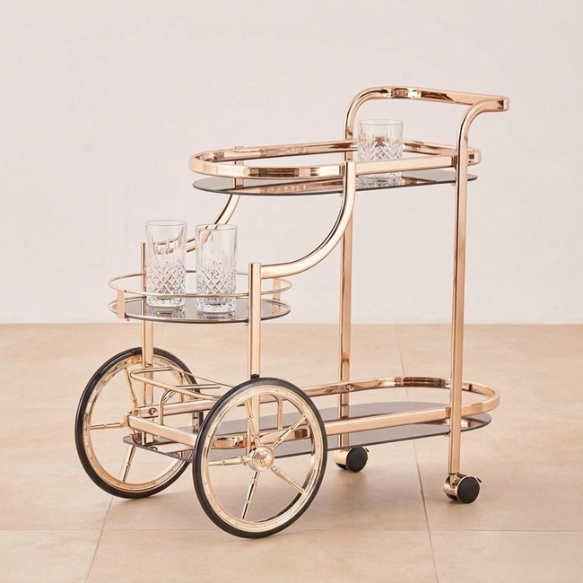 Royal Gold Premium Bar Trolley for Home | Luxury Drinks Cart with Wheels | Designer Bar Cart India