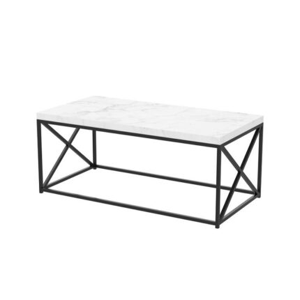 A stylish rectangular center table featuring a smooth white top and strong black metal frame. Designed for modern living rooms with a clean and elegant look.