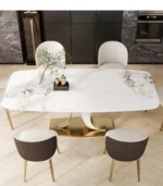 Enhance your dining space with our premium Designer Dining Table with Chairs, specially crafted for modern and stylish Indian homes. This elegant dining table and chair set combines luxury design, strong construction, and maximum comfort, making it one of the best dining table designs available online in India.