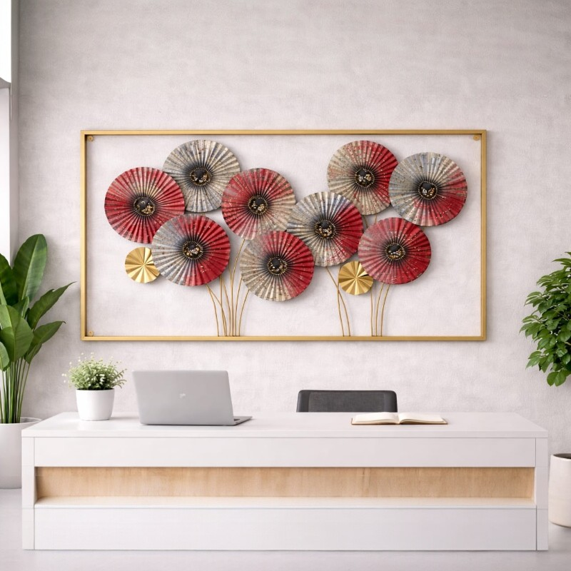 Crafted with premium quality metal and finished with attention to detail, this modern floral metal wall décor in India is durable, stylish, and perfect for decorating living rooms, bedrooms, dining areas, hallways, and office interiors.
