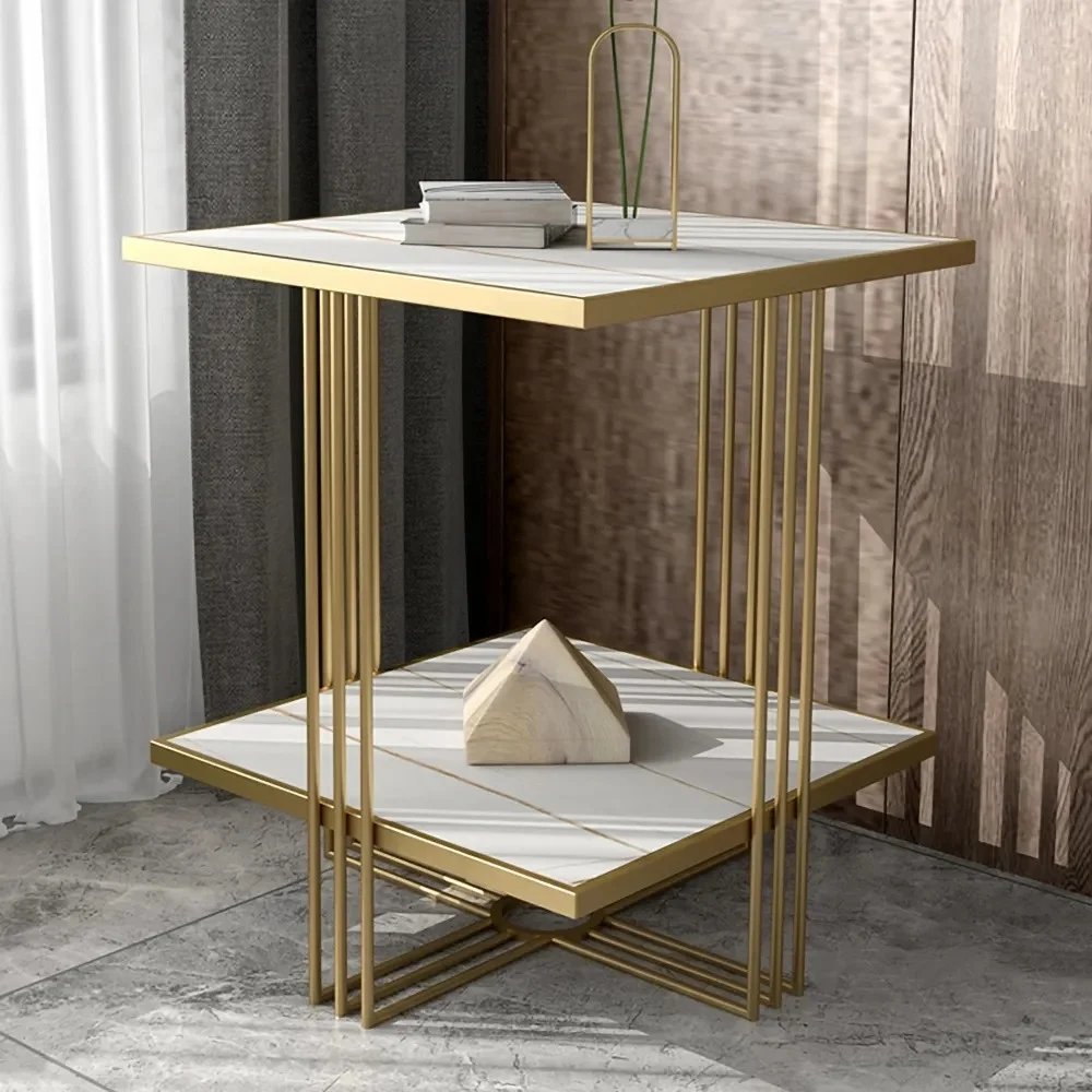Add style and usefulness to your home with this Royal Gold Corner Side Table. Designed with a strong gold-finish metal frame and clean white marble-look shelves, this table gives a modern and luxury feel to Indian homes.