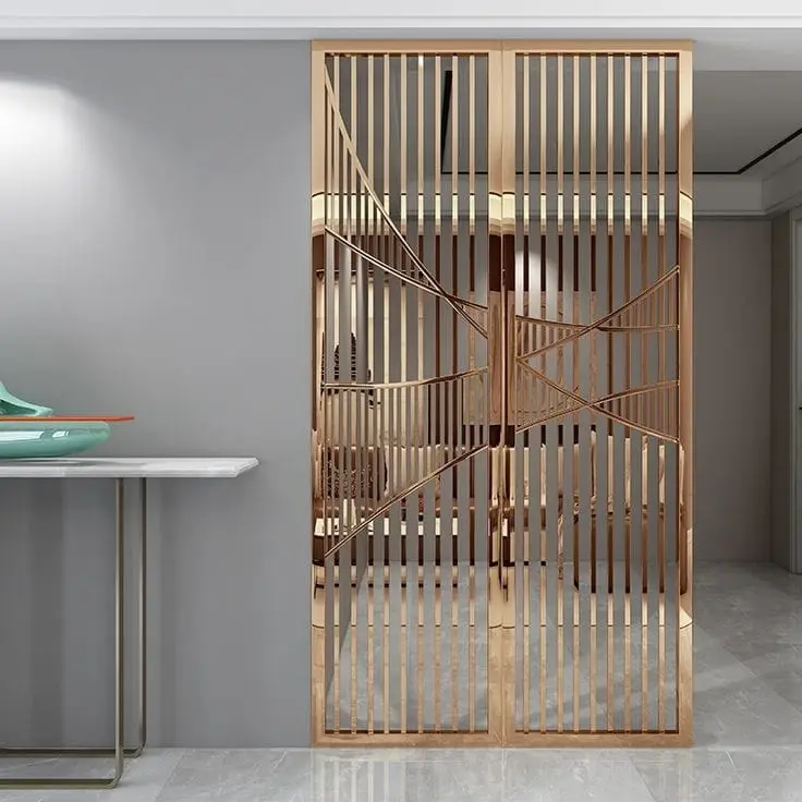 A gold partition door is a decorative metal door used to divide spaces while adding luxury to interiors.